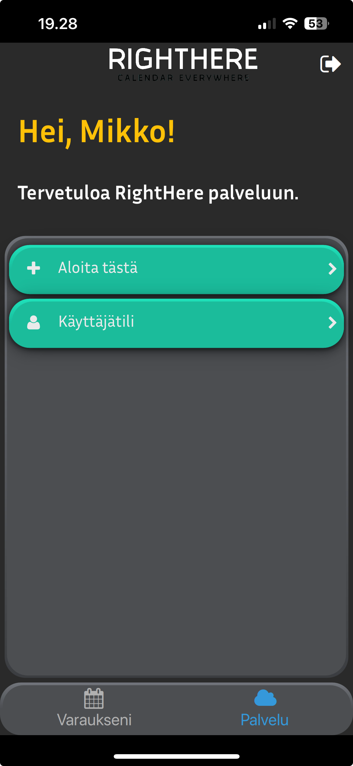 Luotuasi käyttäjän, voit kirjautua sisään aloitusnäkymän oikeasta yläreunasta avattavasta ”Kirjaudu” -valikosta.